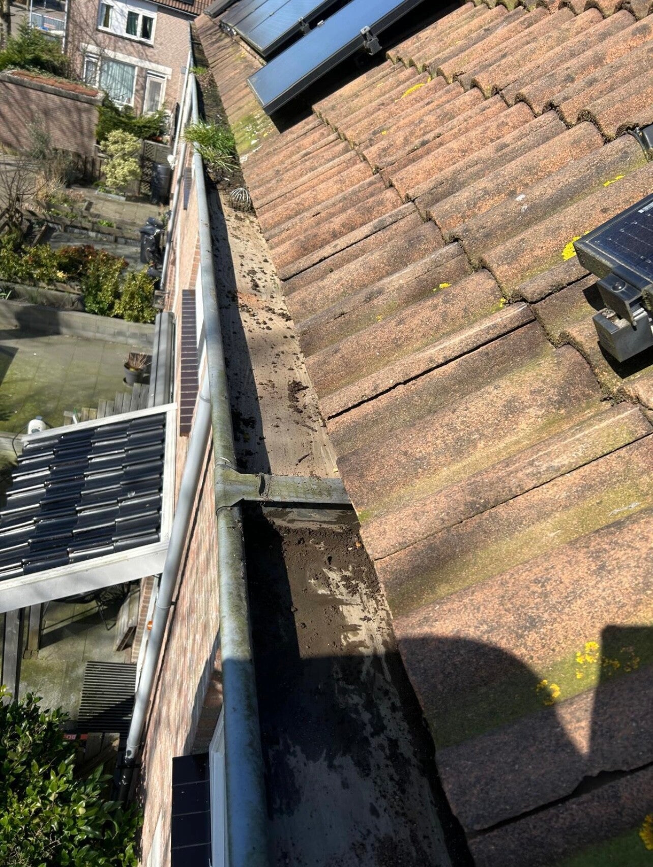 Opvallend was dat de dakgoten van de hele straat met hetzelfde probleem te maken hadden. Na ons bezoek en advies hebben meerdere bewoners ervoor gekozen om gebruik te maken van onze onderhoudsoptie.